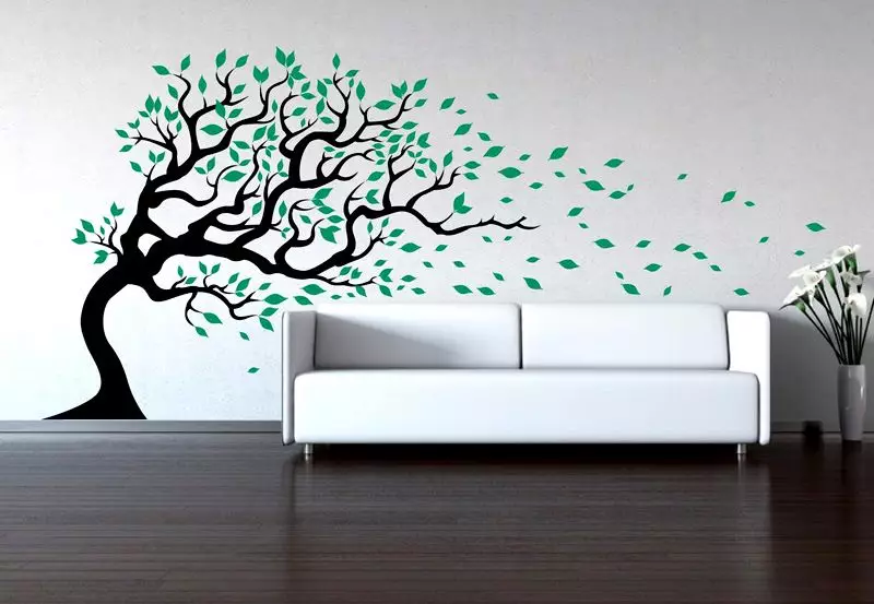 Особенно привлекательно смотрится рисунок дерева с ветками и листьями, распространяющимися на потолок