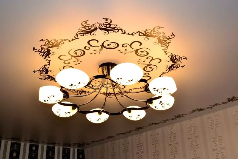 Особенно эффектно смотрится рисунок с растительным орнаментом вокруг люстры