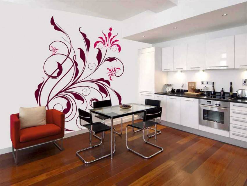 Обычно орнамент, узор, отдельные рисунки подбираются в зависимости от общего стиля комнаты. Картина может быть большой или малой, часто применяют несколько декоров разного размера, но в одном стиле.