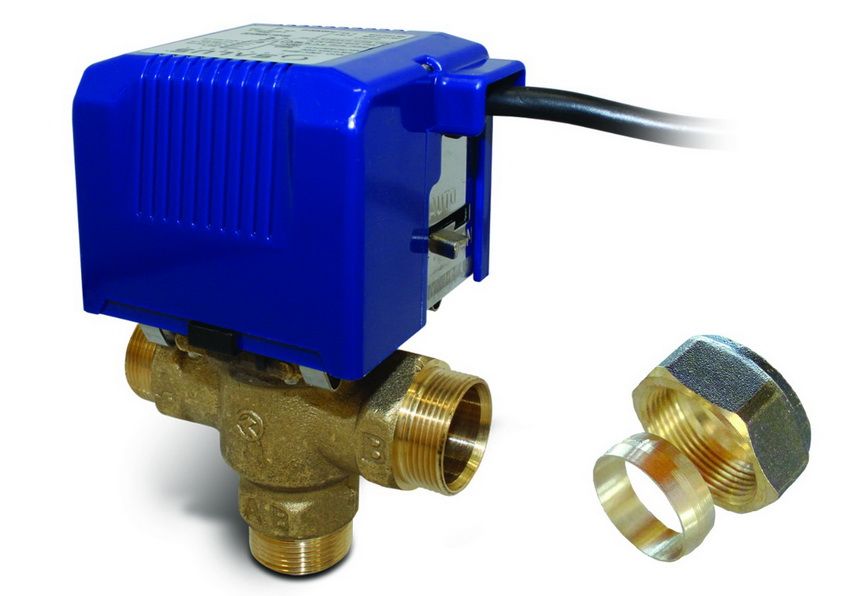 - трехходовые клапаны с сервоприводом на базе электрического мотора.