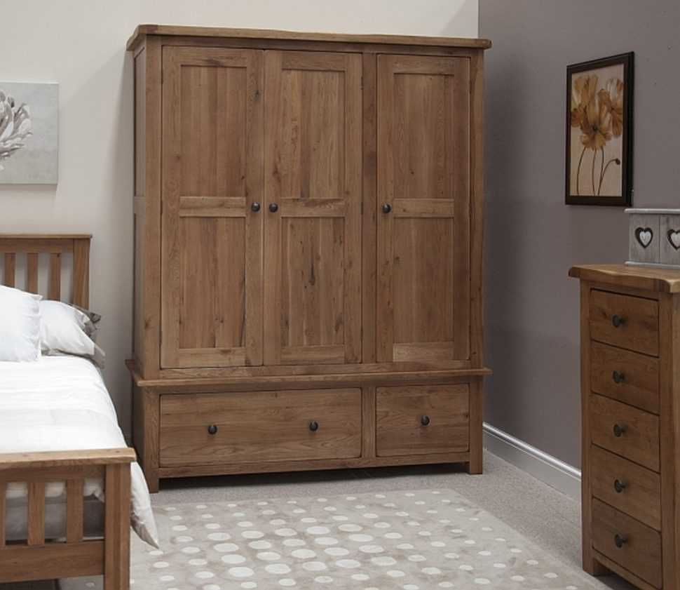 Мебельные щиты из массива натурального дерева. Этот материал ценится за экологичность, долговечность, уникальную текстуру и хорошую стойкость к влаге, внешним воздействиям. Но найти трехстворчатый деревянный шкаф в продаже практически невозможно — из-за дороговизны такие изделия изготавливаются по индивидуальным заказам или своими силами.