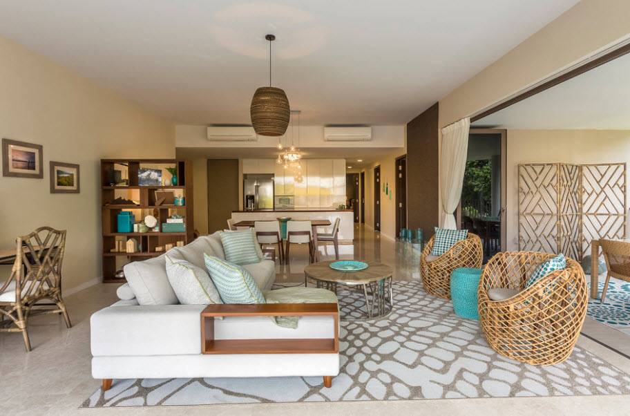 При создании интерьера в тропическом стиле особое внимание стоит уделять предметам мебели. Они должны отвечать нескольким основным требованиям: