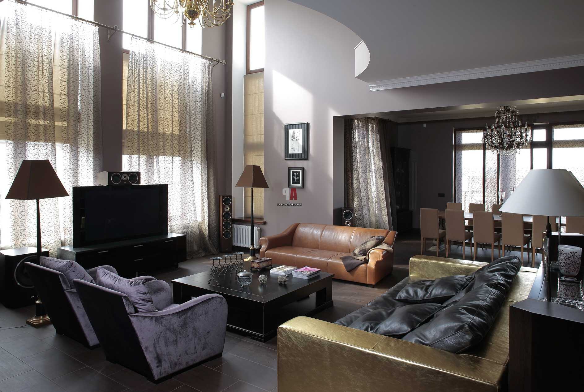 Темные оттенки в интерьере гостиной в стиле фьюжн