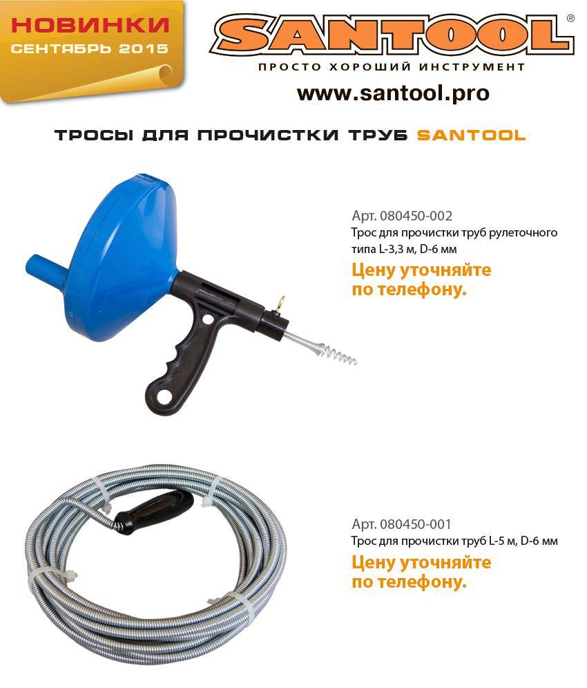 Выбирая трос сантехнический, обратите внимание на его диаметр, прочность и гибкость.Трос выбирается в зависимости от диаметра труб и расстояния, которое необходимо прочистить. Он должен свободно перемещаться в водопроводной или канализационной трубе