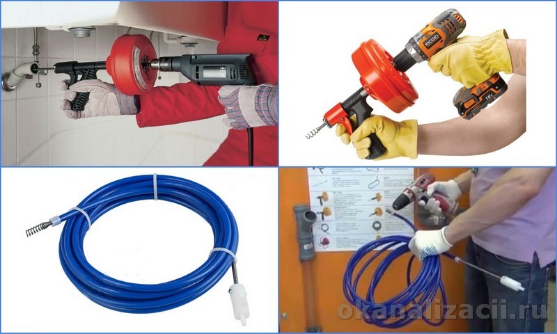 Также сейчас часто используется натяжной электротросс. Он является аналогом ручного профессионального шнура за исключением наличия мотора, который при включении в автоматическом режиме раскручивает проволоку. Это устройство удобно использовать для прочистки уличной канализации, дренажной системы и даже коммуникаций септика.