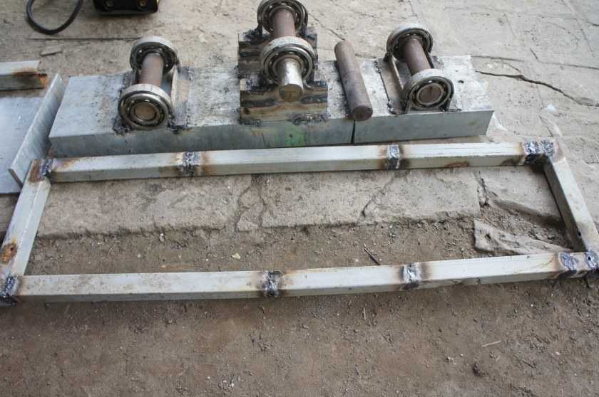 - изготовить ролики и обоймы для размещения подшипников, что может быть достигнуто за счет обращения к услугам профессионального токаря. Всего конструкцией создаваемого устройство предусмотрено наличие трех валов, где один крепится на пружинах, а другие фиксируются в боковинах рамы;