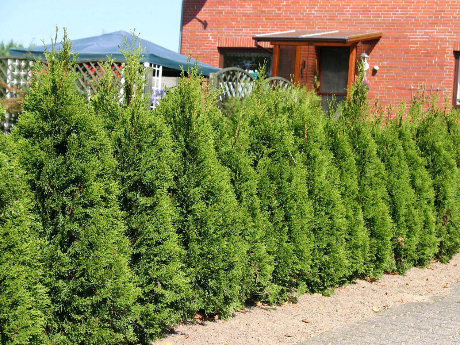 Тую Смарагд Витбонт можно успешно использовать для создания живой изгороди