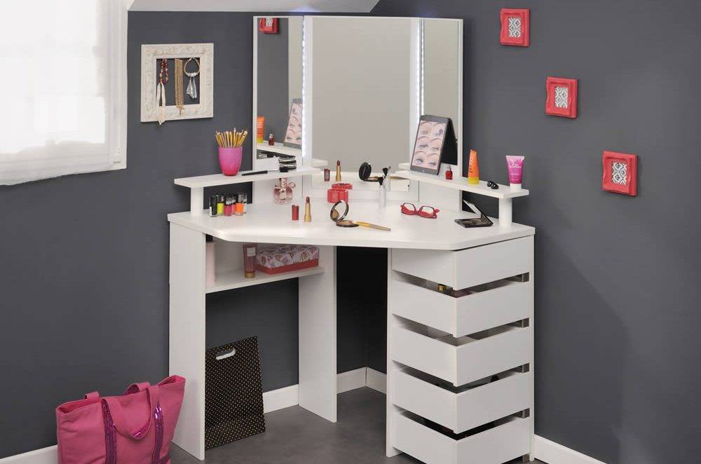 Подобные решения не будут удачными в спальне девочки. Туалетный столик обязательно должен быть оснащен откидным или стационарным зеркалом. Ручной вариант здесь неприемлем. Велик риск, что ребенок его разобьет. С особенностями конструкции туалетного столика для спальни ребенка можно познакомиться, просмотрев фото.