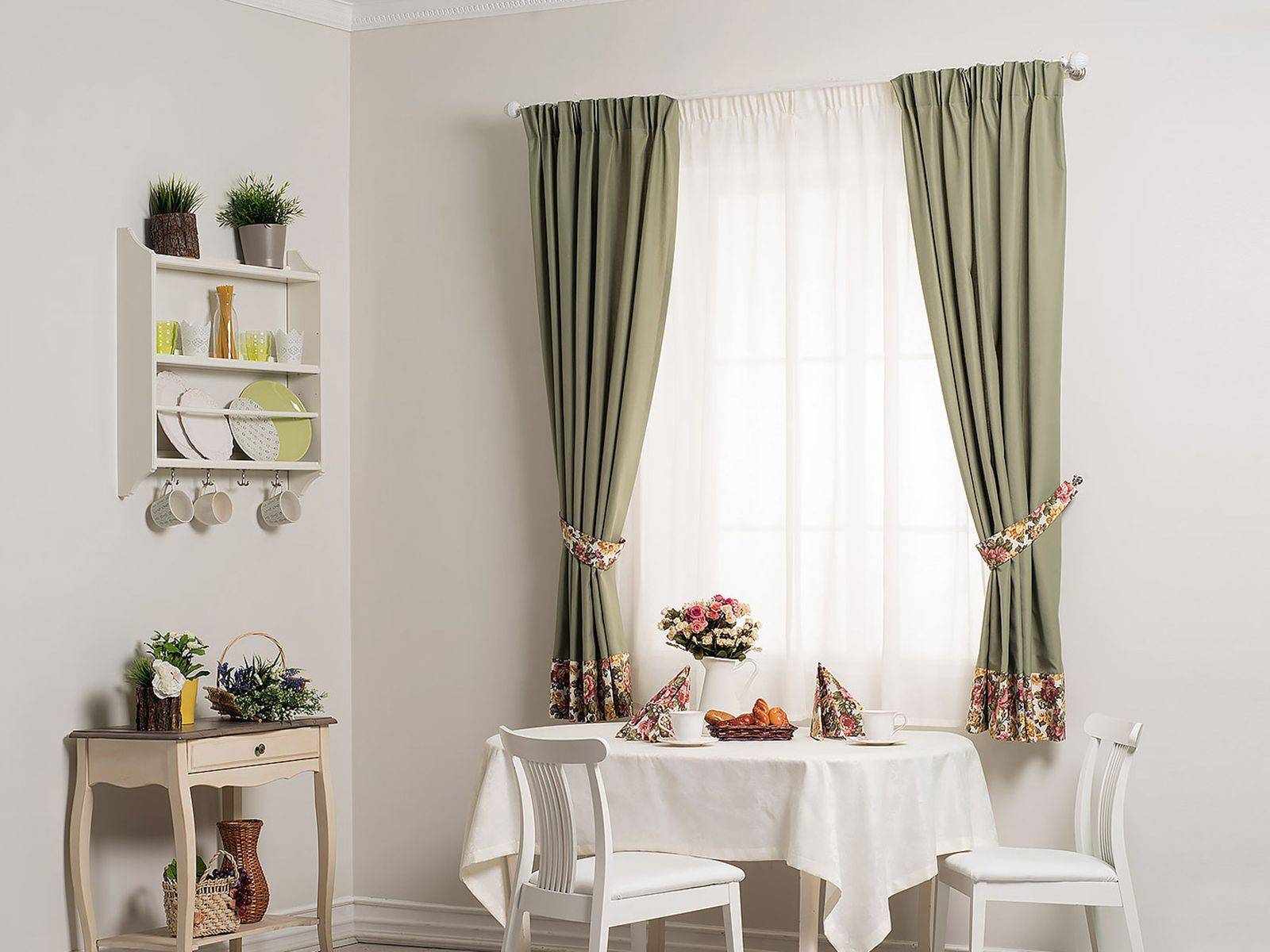 В просторных кухнях возможны любые тона, для маленьких – только светлые (голубые, песочные, молочные, нежно-зеленые, лавандовые цвета). В солнечном помещении можно выбрать более насыщенные оттенки, а в темных – полупрозрачные ткани.