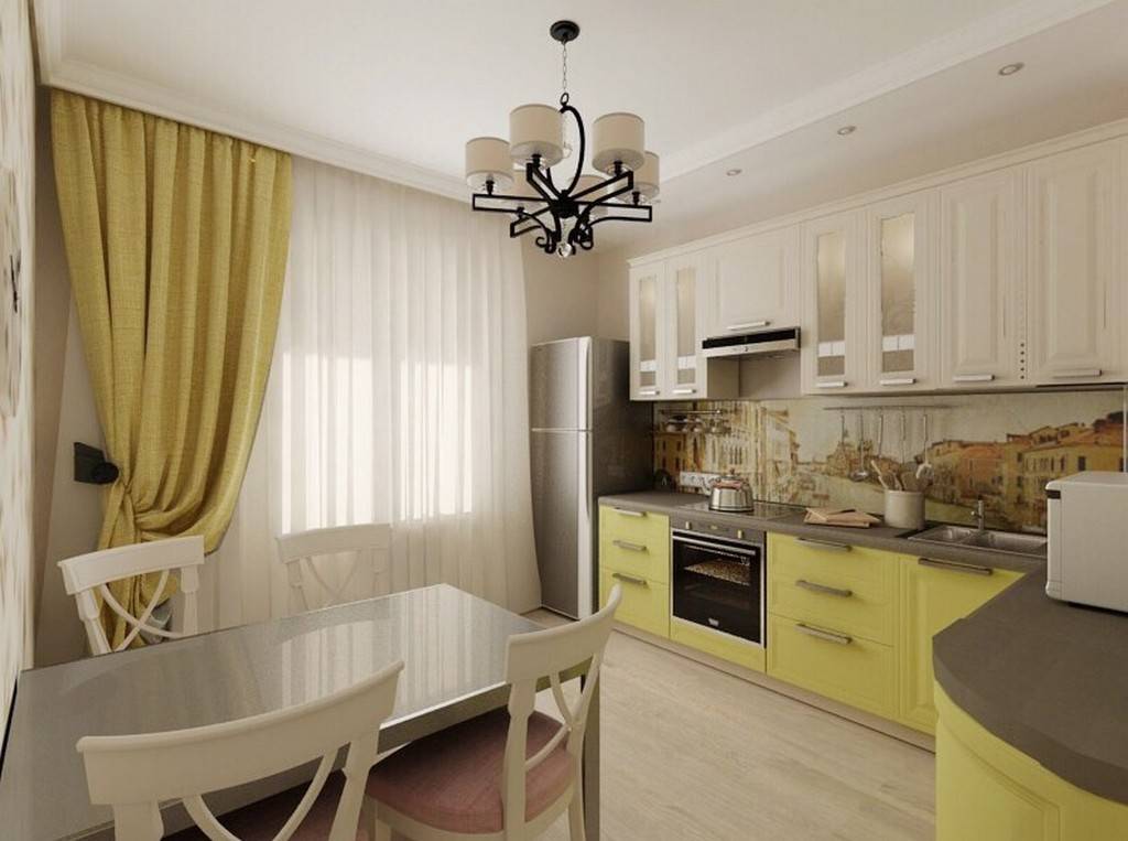 Кухня с ассиметричными шторамиИсточник арт-интерьер.москва