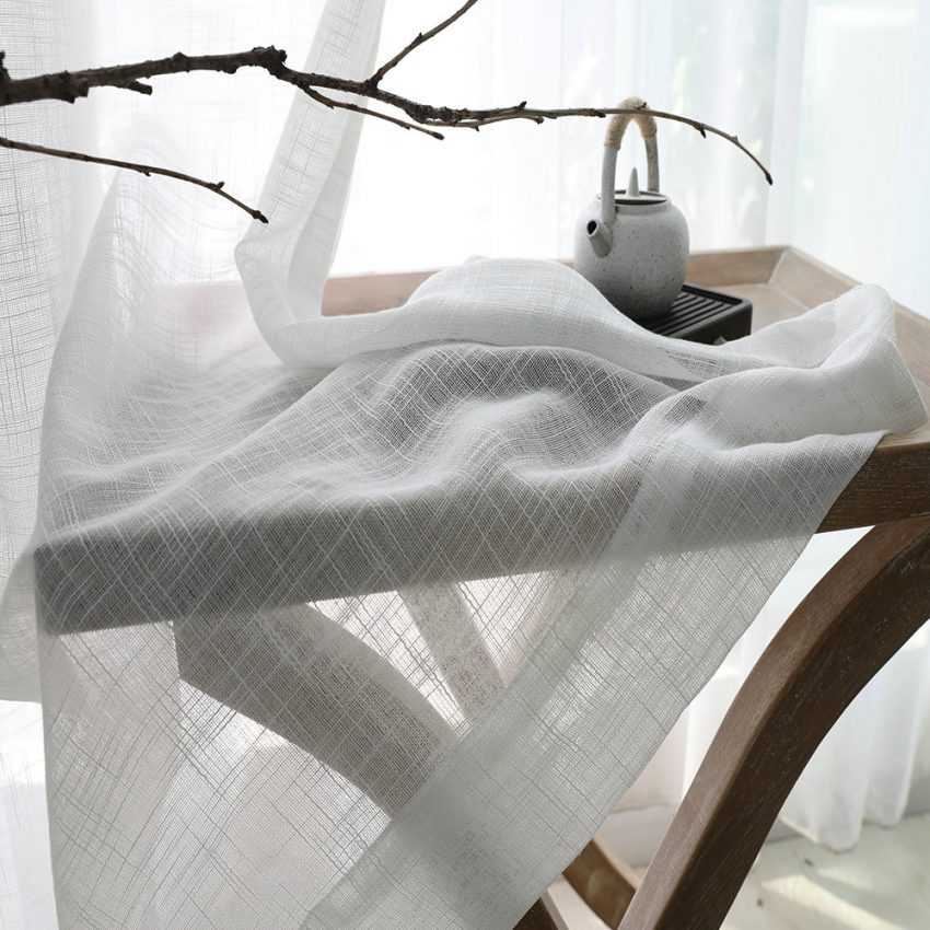 Легкий, воздушный материал для занавесок создают, применяя несколько способов плетения — батист, шифон и жаккард.