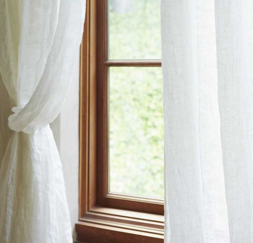 Текстильное обрамление окна выполняется из тканей как натурального, так и синтетического происхождения. Преимущества первых:
