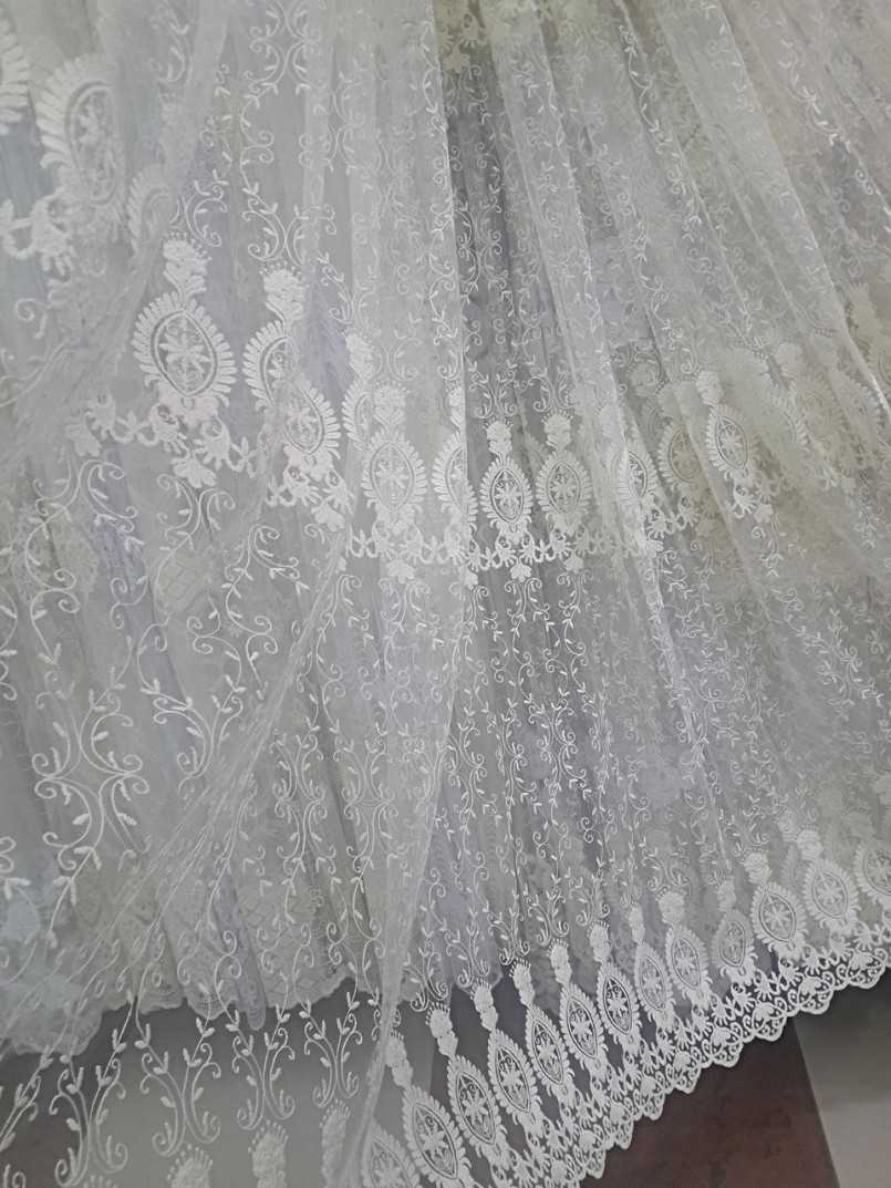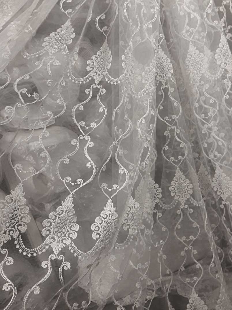 Батист — это плотное переплетение нитей, позволяющее создавать легкую и гладкую ткань. Из данного материала очень часто производят тюль с вышивкой.