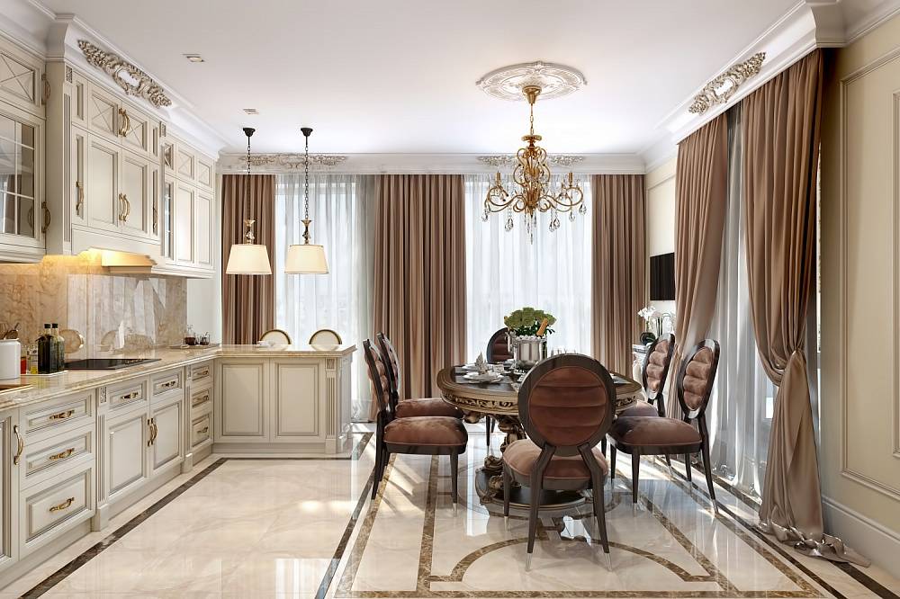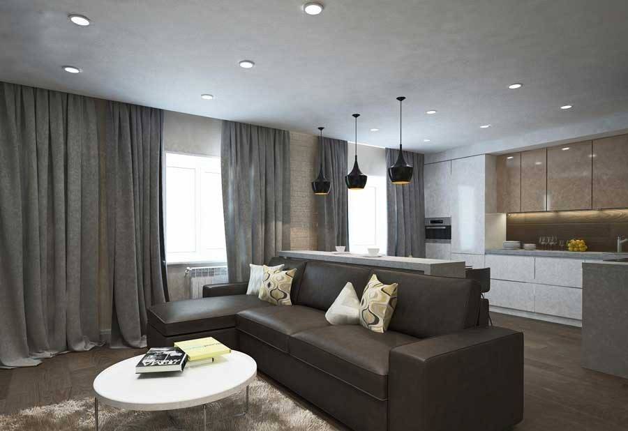 Выбор стиля занавесок для кухни, совмещенной с гостиной