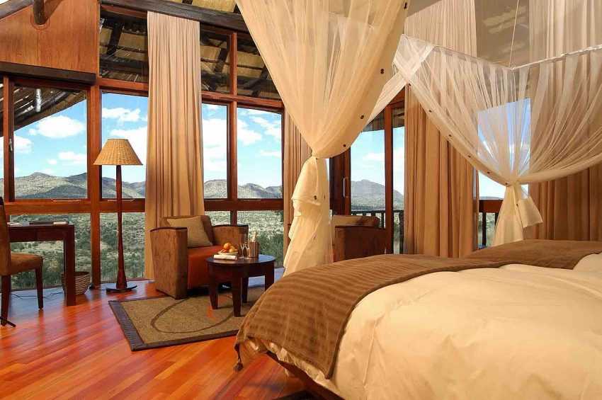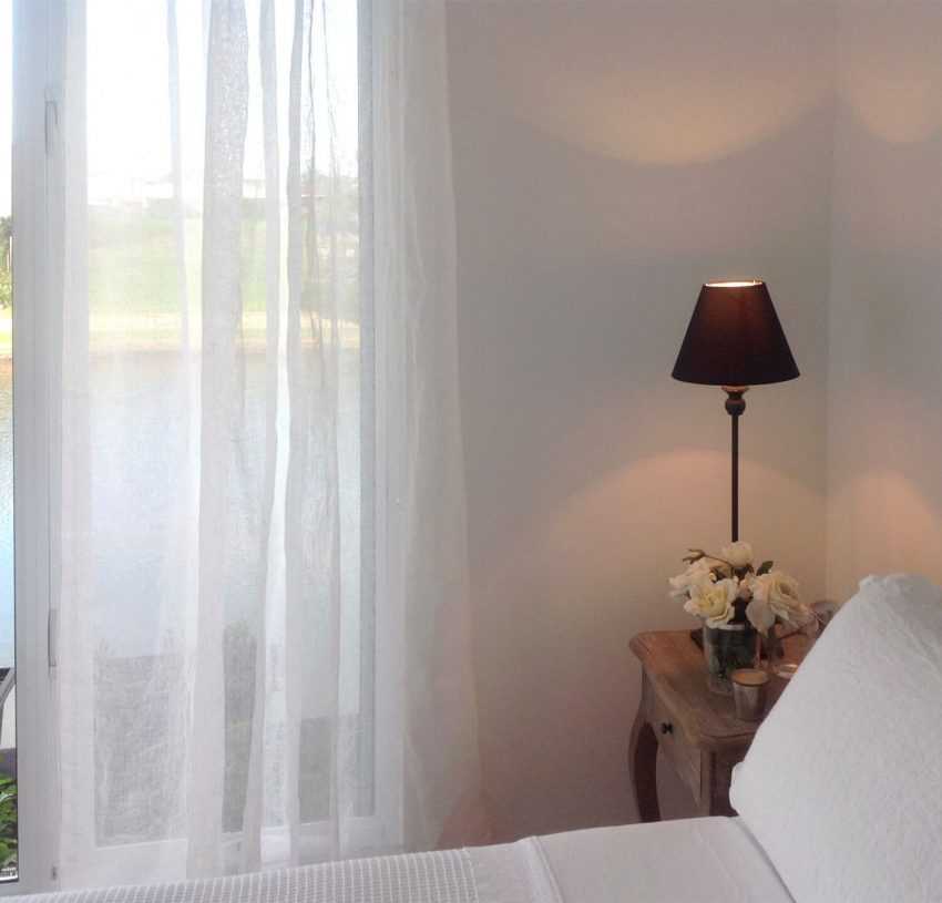 Тюль коричневого или серого оттенка поспособствует рассеиванию яркого солнечного света, более спокойному отдыху и романтической обстановке.