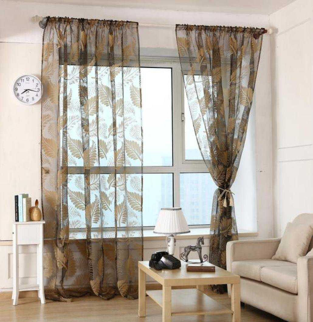 Если в комнате небольшое окно, то визуально уравновесить его можно с помощью тюли с крупным узором или рисунком.