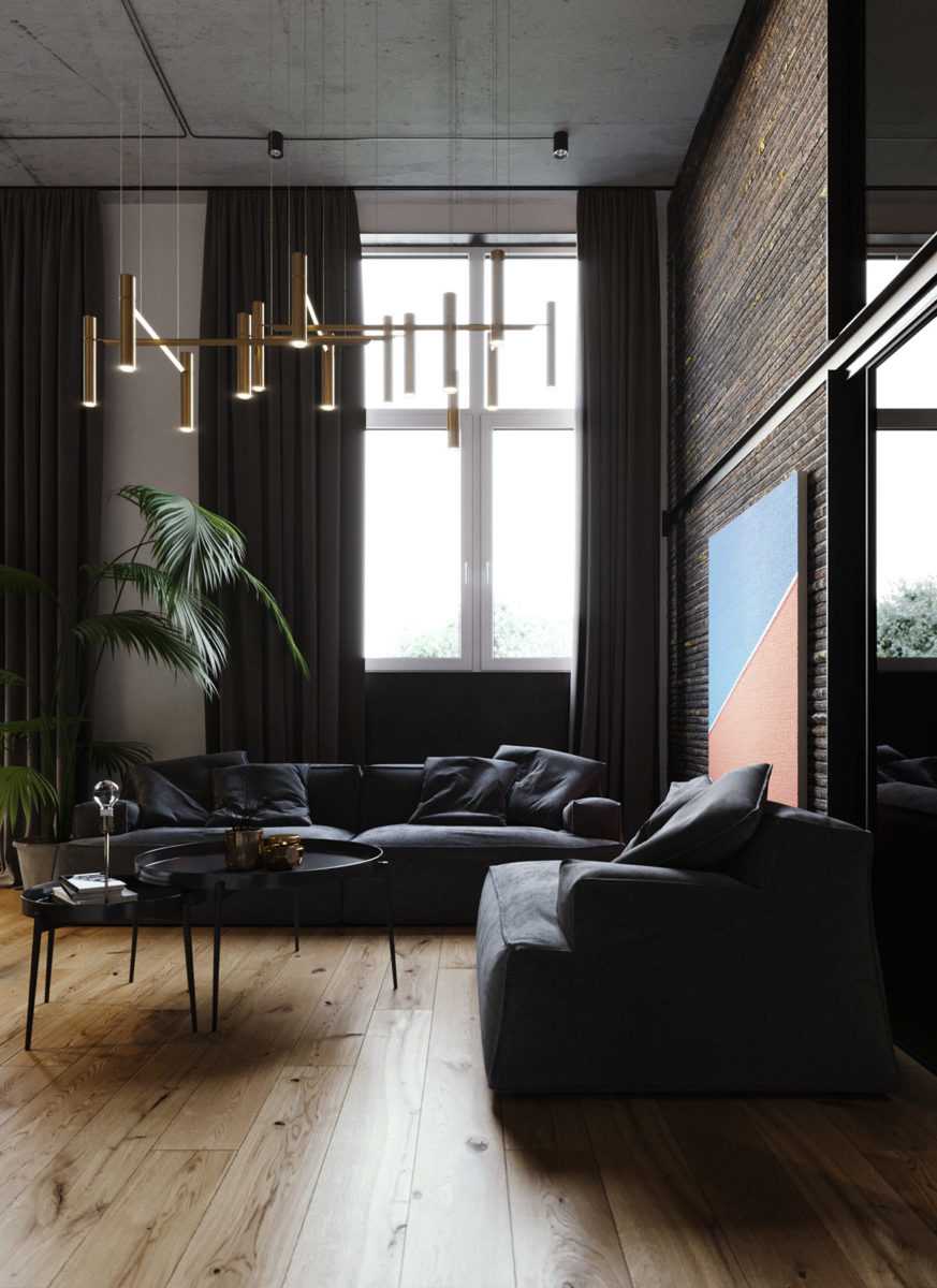 Специалисты советуют покупать шторы темного оттенка в соответствии с типом помещения и его размерами. К примеру, шторы в гостиную в стиле «лофт» или «хай-тек», «модерн», с высокими потолками, однозначно должны быть черными. Их стоит сочетать со светлой гардиной или невесомым полупрозрачным серым тюлем.