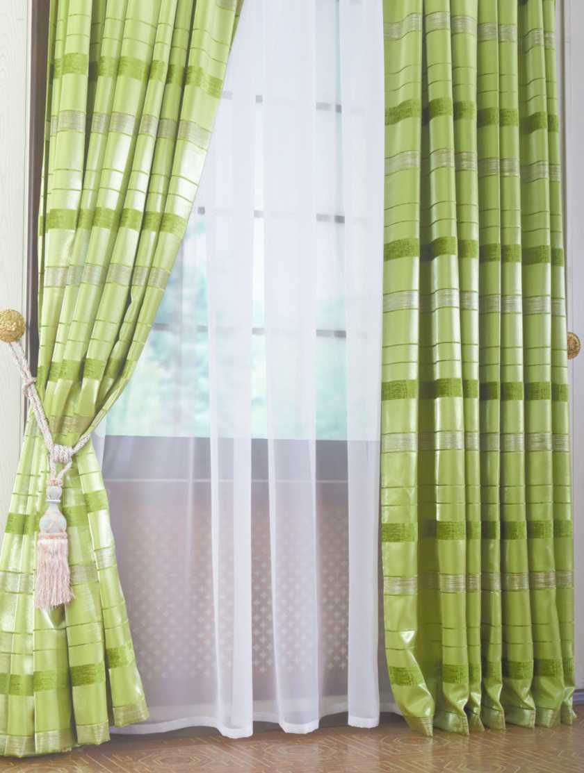 Определяясь с тканью для портьер, стоит учитывать лишь одно правило: чем выше плотность материала, тем сочнее и насыщеннее кажется салатовый цвет. Другой важный нюанс: лёгкий, невесомый текстиль может заставить любой интерьер выглядеть изящно и нежно.