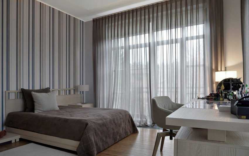 В оформлении часто встречаются полосы, так вот вертикальное их расположение уместно в квартирах с низкими потолками, где, к слову, стоит отказаться от громоздких украшений или ламбрекенов, а горизонтальное — на узких окнах. Сам цвет тоже визуально влияет на восприятие комнаты: светлый тюль увеличивает простор, а темный – скрадывает его.