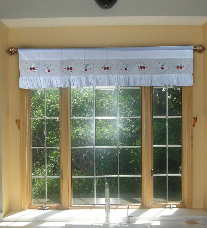 - Для того, чтоб максимально скрыть помещение от солнечных лучей можно выбрать короткий тюль с вышивкой или узором.