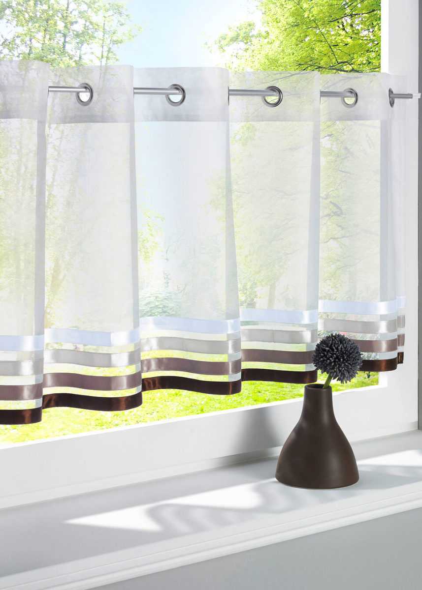 Регулируемые по высоте занавески – оптимальный вариант для кухни. В зависимости от дизайна интерьера кухни можно подобрать необходимый цвет или рисунок, а также дополнительные аксессуары и украшения.