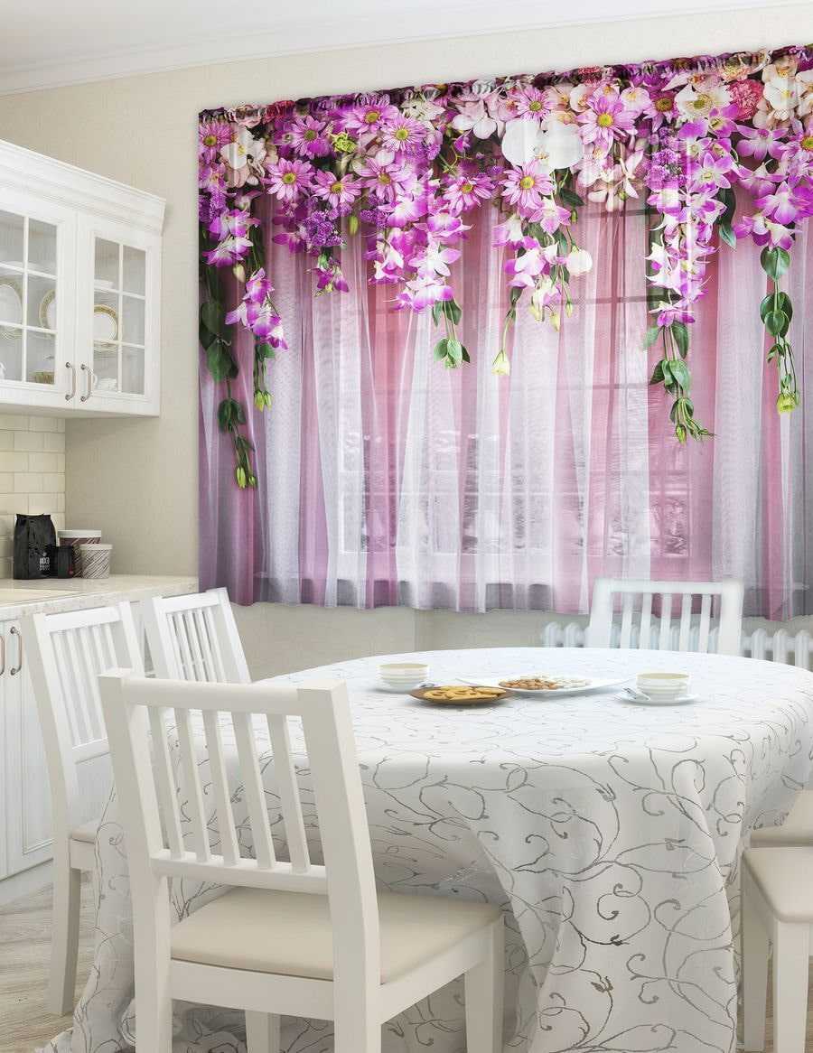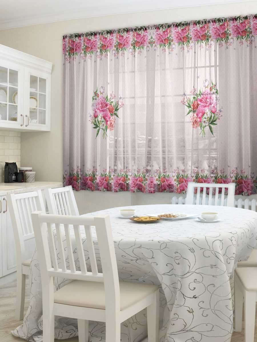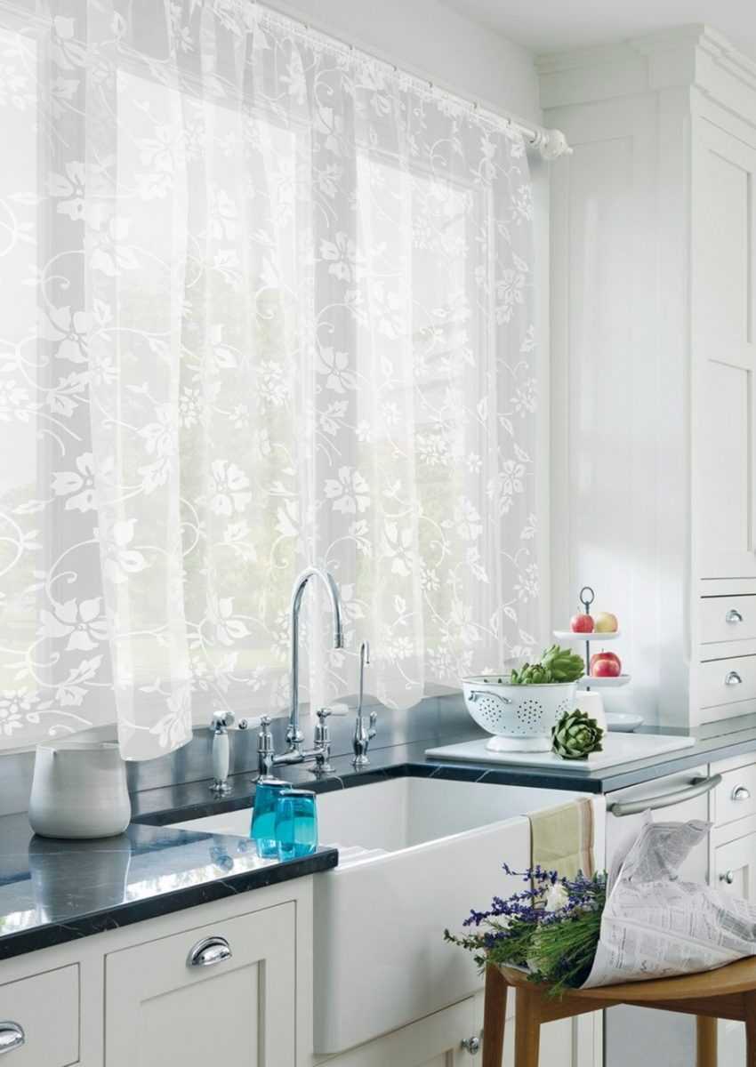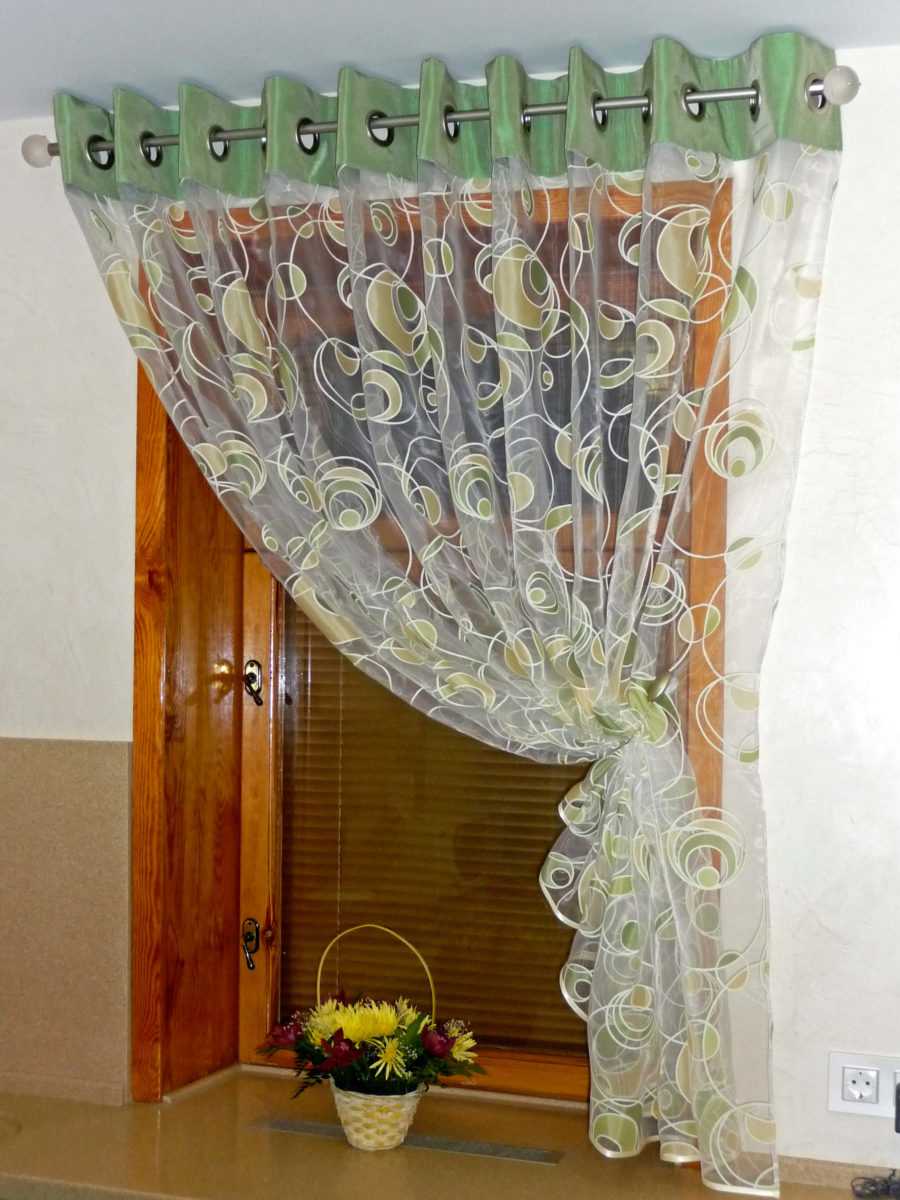 С тех пор технология производства значительно изменилась. Применение синтетического волокна позволяет создавать разнообразные новинки тюля для кухни.