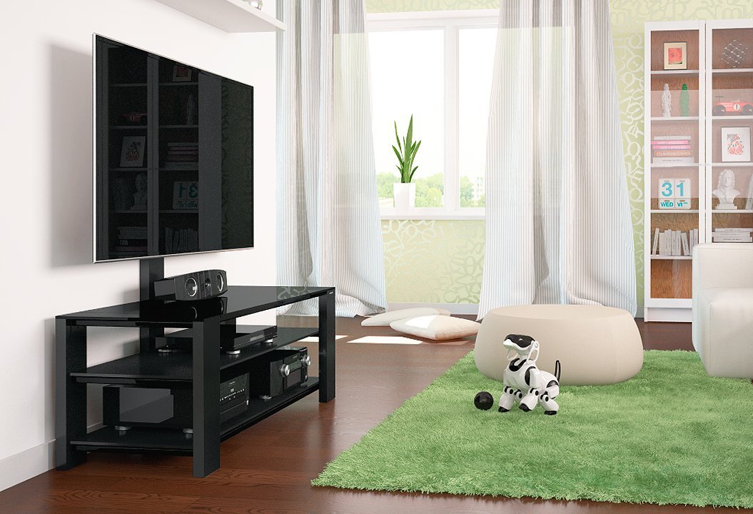 Пожалуй это самый распространенный и практичный вариант — такие подставки могут быть самых различных форм и цветов, эффектно выглядят и снабжены удобными полками для предметов и дополнительной техники.