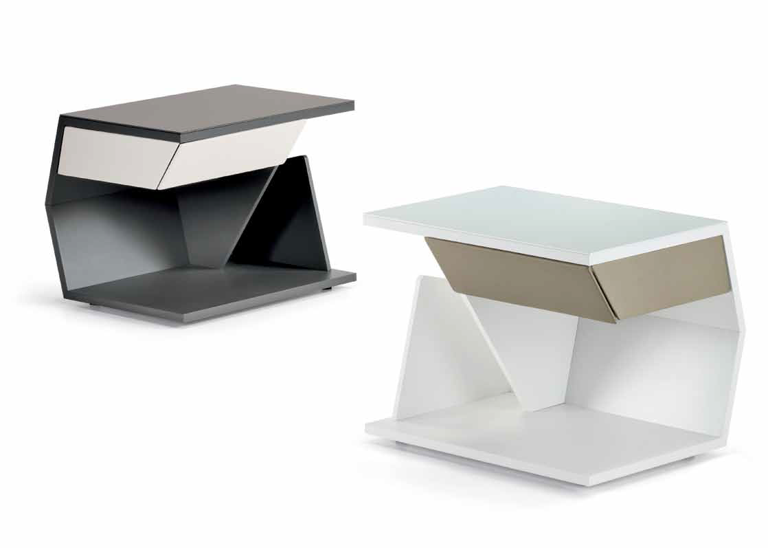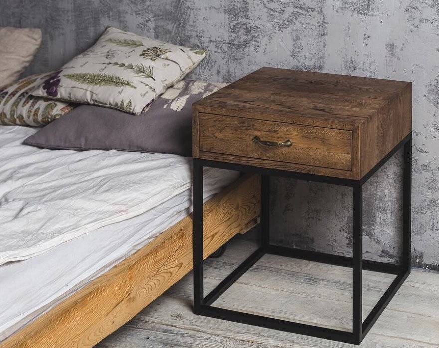 - нестандартные формы — такие необычные конструкции могут быть прямоугольными или в форме пирамиды. Востребованной считается прикроватная тумба для спальни ломаной формы. Выбираются данные изделия обычно только с декоративными целями, так как смотрятся в любом помещении красиво и изысканно.