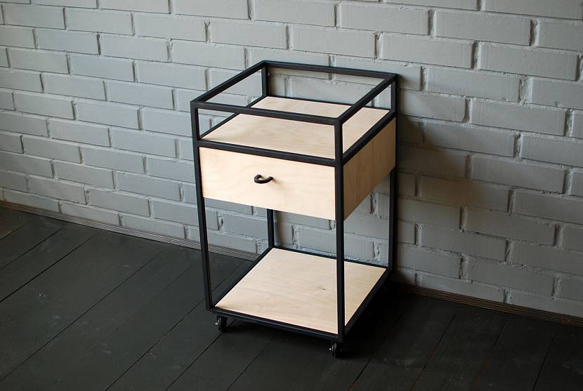 - мобильная конструкция — используется в качестве прикроватного столика, подставки под телевизор или комнатный цветок. Имеет небольшие размеры, дополнительными секциями может быть не снабжена;
