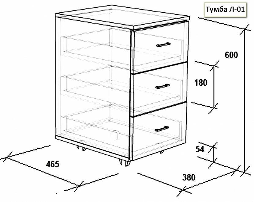 - закрытая модель с ящиками — может использоваться как самостоятельный предмет интерьера либо как элемент к рабочему столу. Актуальна для офисов, школ, больниц, поликлиник. Ящиков может быть 2,3 и 4. Они называются секциями;