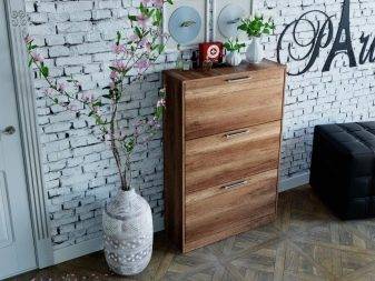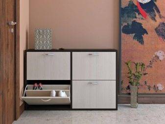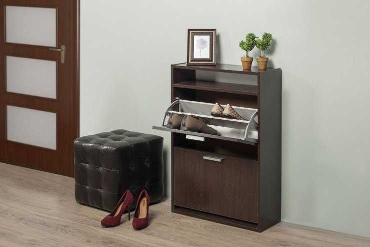 Среди видов выделяют: напольные и навесные тумбы. По типу различают: открытые и закрытые тумбы. Для быстрого проветривания обуви целесообразней приобрести открытую тумбу.