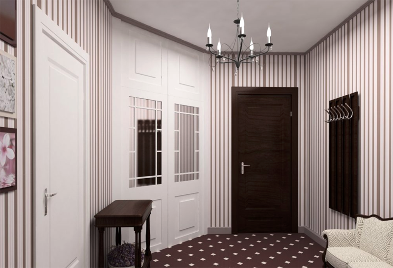 широкие вертикальные полосы белого или яркого оттенка увеличивают объем, их можно использовать в маленькой прихожей;