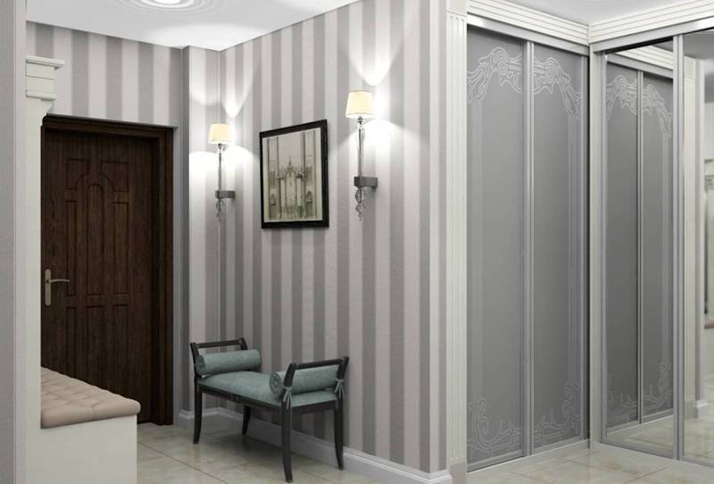 рельефные пастельные полосы, отличающиеся между собой на несколько оттенков, очень элегантно смотрятся в коридоре и прекрасно подходят для классических прихожих;