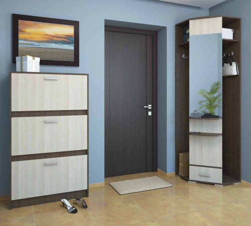 Также в продаже имеются конструкции с глухими закрытыми дверцами. В них есть полки и вешалки для хранения верхней одежды и обуви.