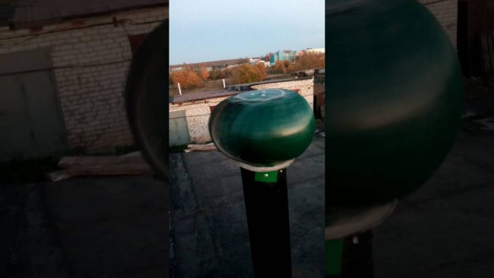 Скорость вращения блестящего корпуса невелика, всего 3-5 об/с, поэтому правильно установленный турбодефлектор при небольшом ветерке не создает какого-либо дискомфорта, не издает шумов и скрипов.