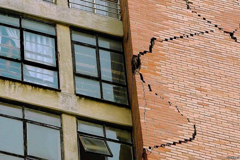 Трещины на кирпичном фасаде в новостройкеИсточник fishki.net
