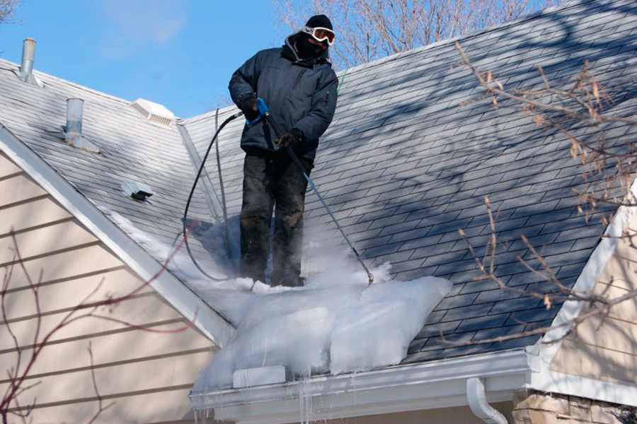- На кровле оставляется слой снега и льда толщиной от 2 до 5 см, который предохраняет покрытие от повреждения.