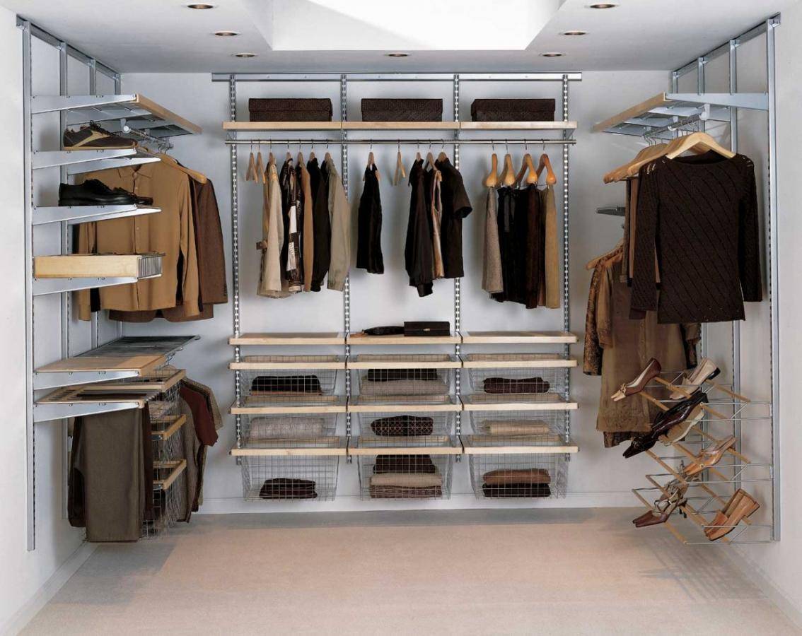 В продаже имеются полки, вешалки и другие детали. С их помощью удастся собрать свой уникальный вариант. Нужно лишь правильно подобрать элементы и рассчитать их количество, чтобы в гардеробной поместилась вся одежда.
