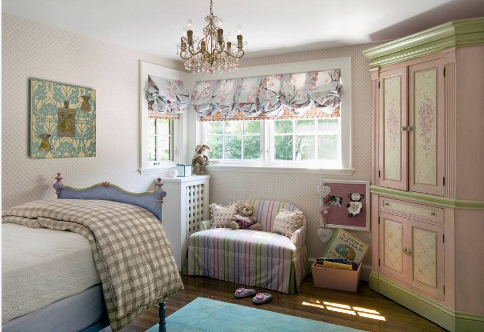 Узкие полочки с книгами и декоративными вещичками, картины на стенах, мягкая мебель с небольшим столиком могут быть выполнены в различных стилях.