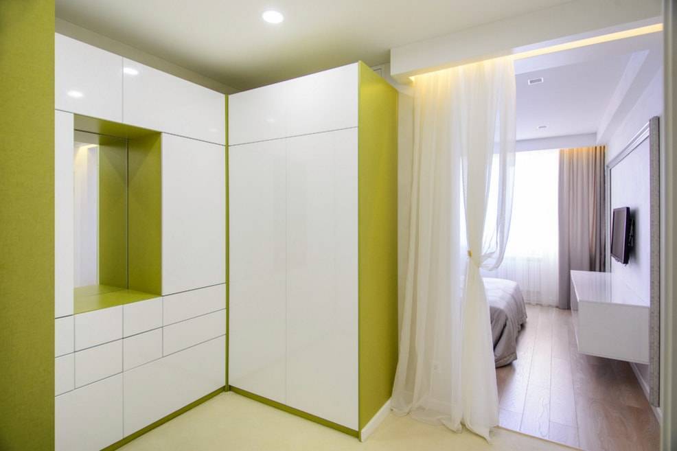 Зонирование цветом. В дизайне интерьера сохраняется общий стиль и концепция, но используются разные цветовые решения. Такой прием наиболее легко воспринимается, не дает слишком резкого разграничения и сохраняет простор, полученный за счет объединения прихожей и гостиной.
