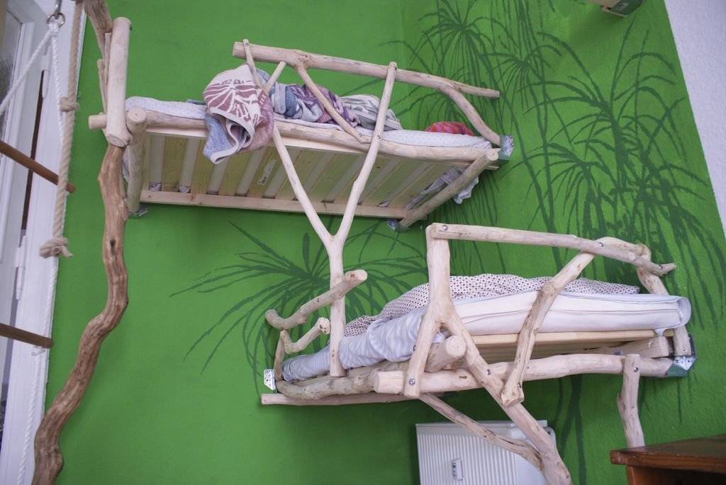 Оформление в стиле рустик. Привлекает взоры конструкция, сделанная из необработанной древесины