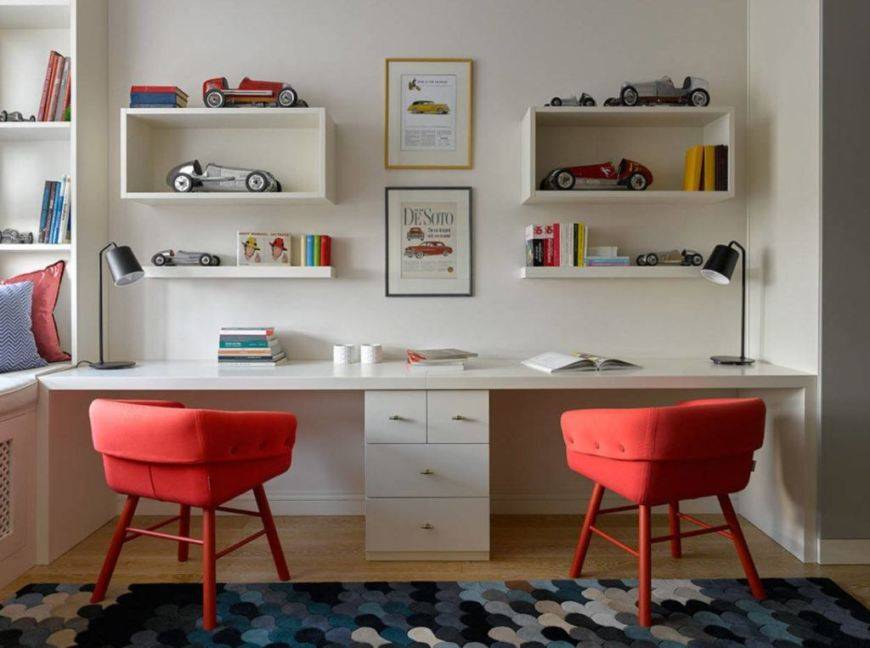 Есть несколько интересных и практичных идей, которые подскажут, как выбрать стол для двух детей. Можно использовать многофункциональную мебель и оригинальные способы её расстановки. Важнейшая задача — расположить рабочие места так, чтобы дети не мешали друг другу.