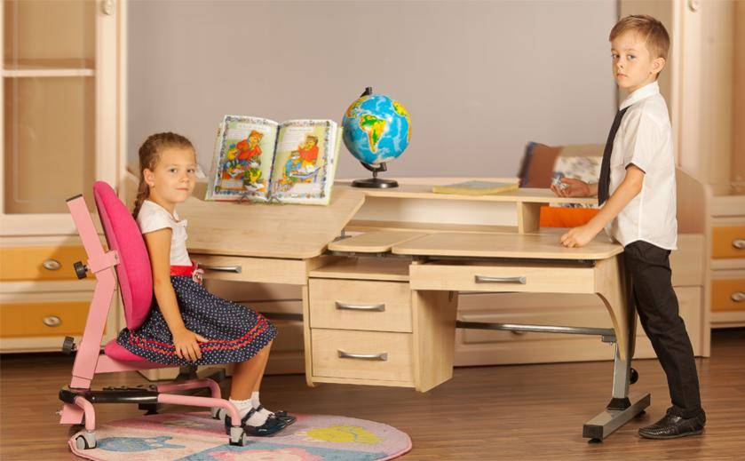 Нужно, чтобы мебель для учёбы подходила ребёнку по росту, поэтому раздвижной столик будет удобен не всем. Такая конструкция подойдёт только погодкам или ребятам с небольшой разницей в возрасте и росте.