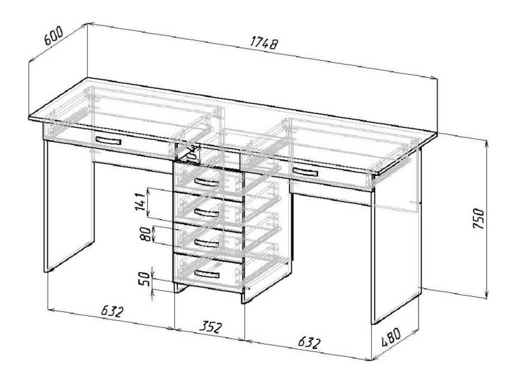 Стандартная ширина рабочей поверхности для двоих школьников достигает 1 м, минимальная глубина – 0,6 м, оптимальное пространство для постановки рук – 50 х 50 см. Параметры мебели зависят от роста детей:
