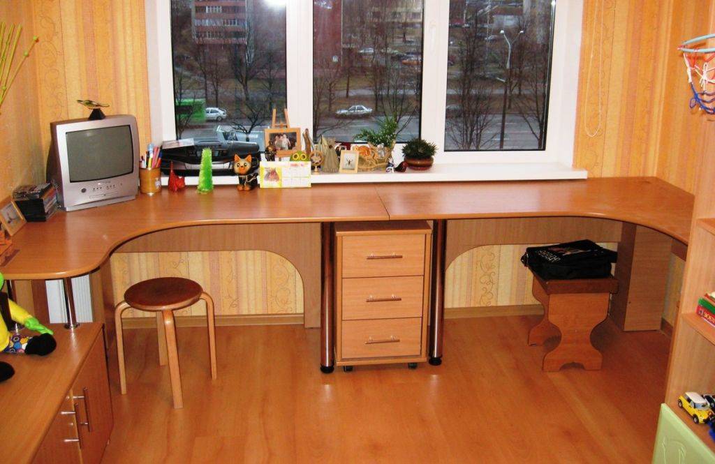При расположении стола для двоих детей у окна важно, чтобы не было сквозняка. Если под окном находится тепловая батарея, значит, следует отставить зазор между мебелью и радиатором для циркуляции воздуха