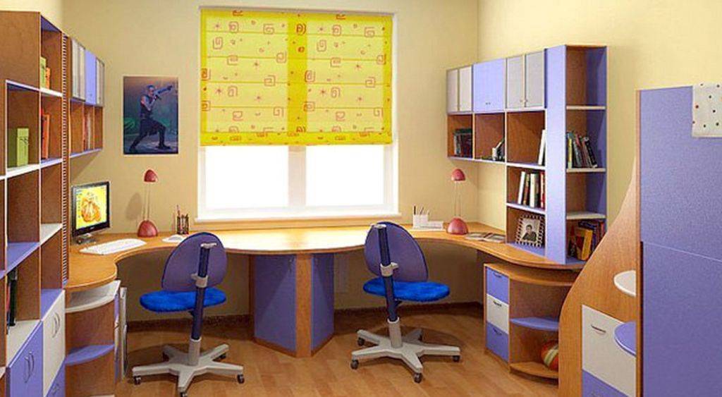 Планировка рабочего места должна обеспечивать обоих детей свободным пространством и возможностью спокойно заниматься своими делами. Поэтому следует ответственно подойти к выбору оборудования, исходя из возраста и занятий школьника.