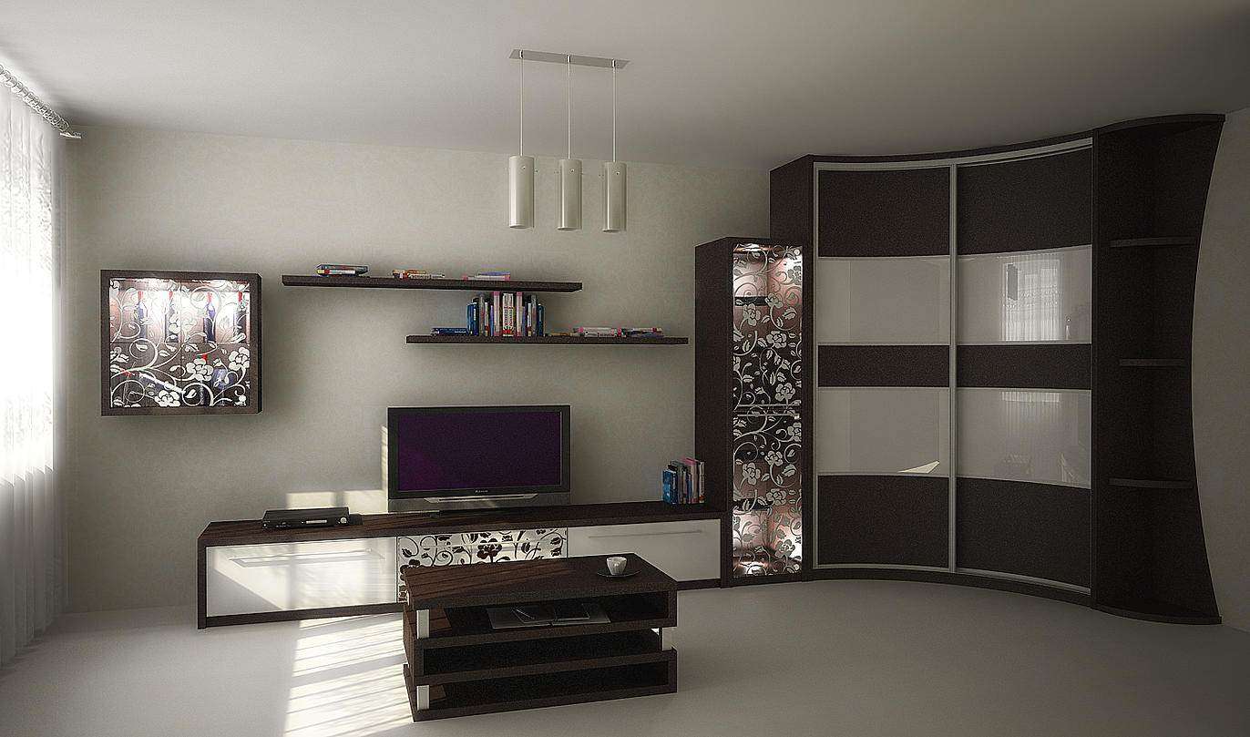 Дизайн углового шкафа-купе для гостиной