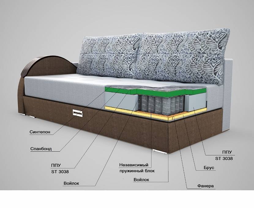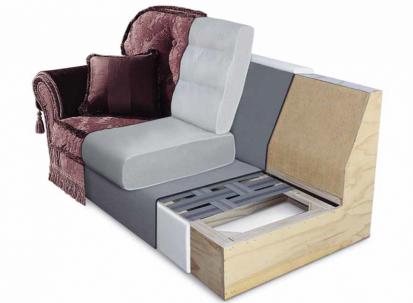 Наполнитель формирует мягкую часть мебели и складывается из блоков: плотного и мягкого, обеспечивающего комфорт во время сидения.