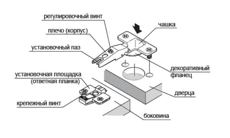 Помните, что навесные петли бывают левыми и правыми, к каждой дверке подберите соответствующую пару. Для того чтобы дверки закрывались плотно, нужно металлические пластины петель утопить. Предварительно придется сделать разметку.