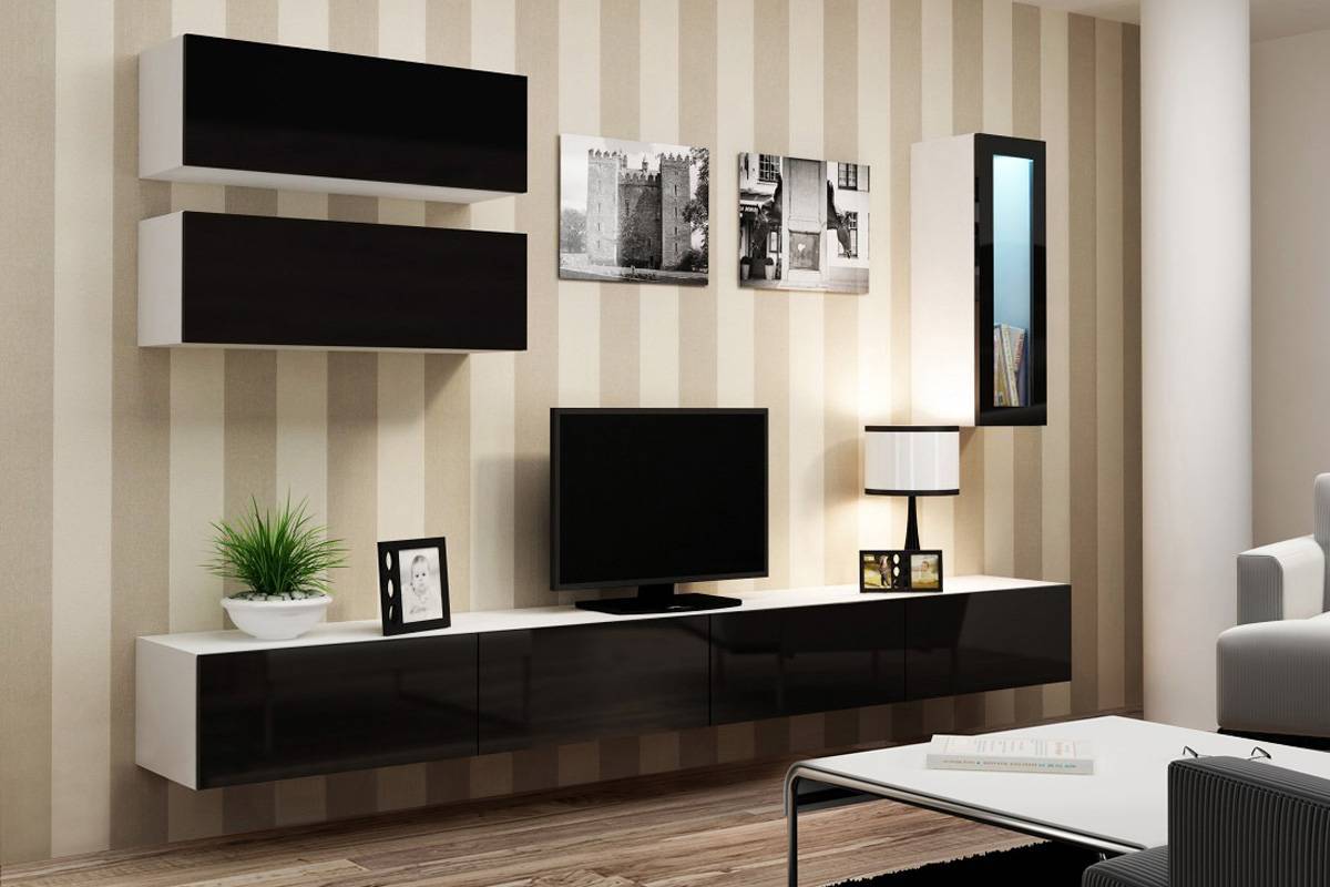 - Подвесные изделия используются в современных гостиных. Они имеют небольшой размер и крепятся непосредственно к стене на любом удобном для вас уровне. Нередко покупается целый набор подобных шкафов, которые образуют целые композиции на стене.